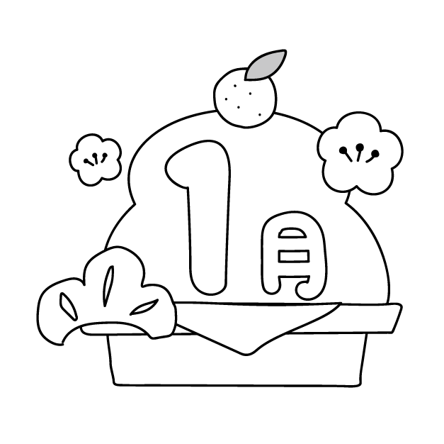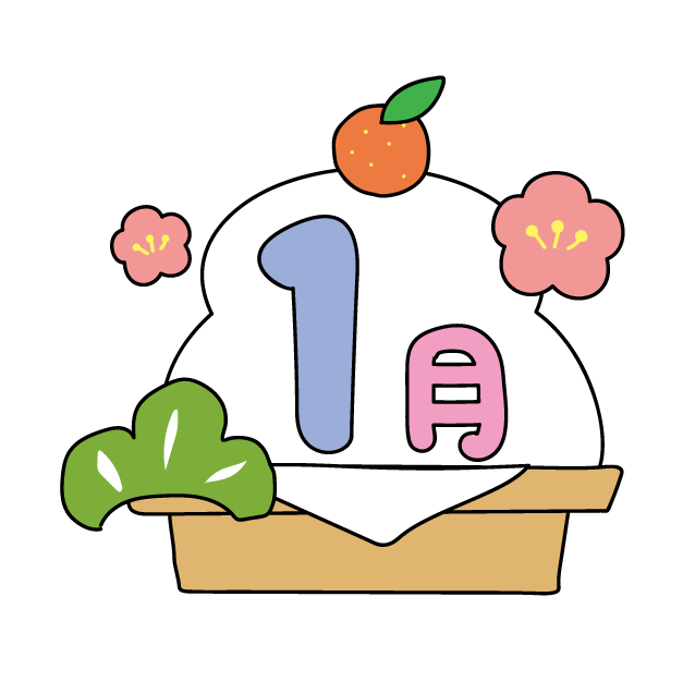 1月タイトル 鏡餅 園だより 梅 もも 桃 お正月 えんだより うめ かがみもち みかん