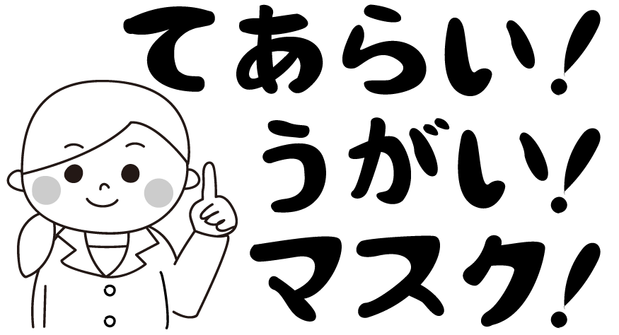 てあらいうがいますく テアライウガイマスク 手洗 うがい マスク 白衣 ほけん 風邪 かぜ インフルエンザ けんおん 病院 保健特集 予防 コロナ 感染 自宅待機 ほけんだより 保健だより 保健所