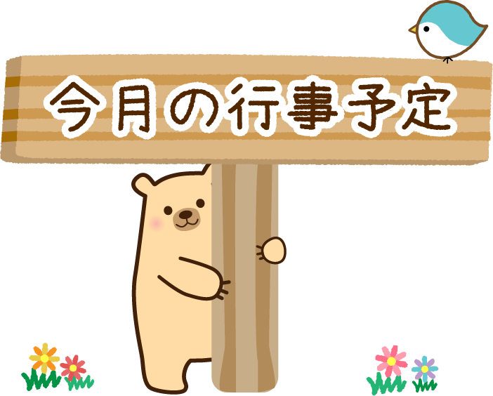 看板 園だより 幼稚園 保育園 こども園 タイトル かんばん 木の枠 熊 くま クマ お知らせ 予定 おたより 鳥 とり 行事 今月の予定