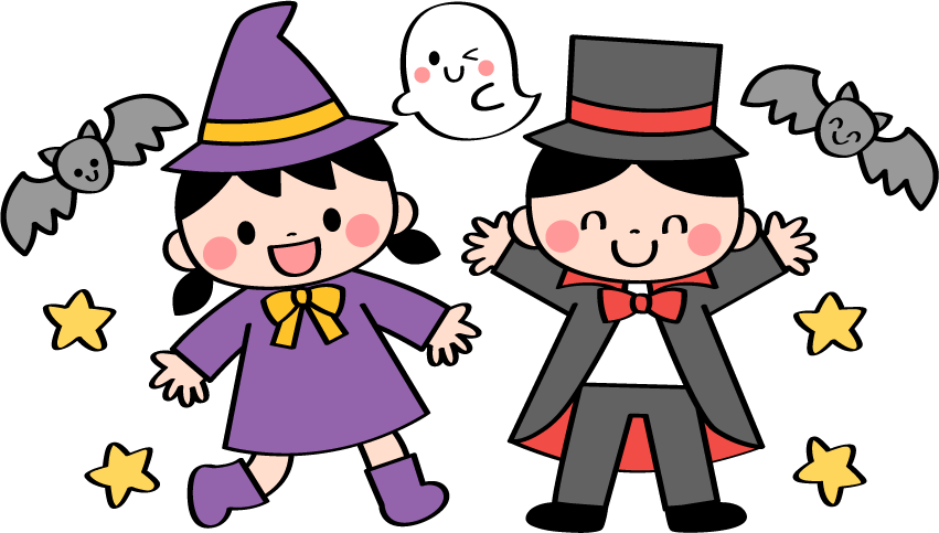 男の子 女の子 魔女 ドラキュラ 星 コウモリ おばけ オバケ ハロウィン