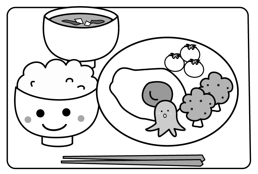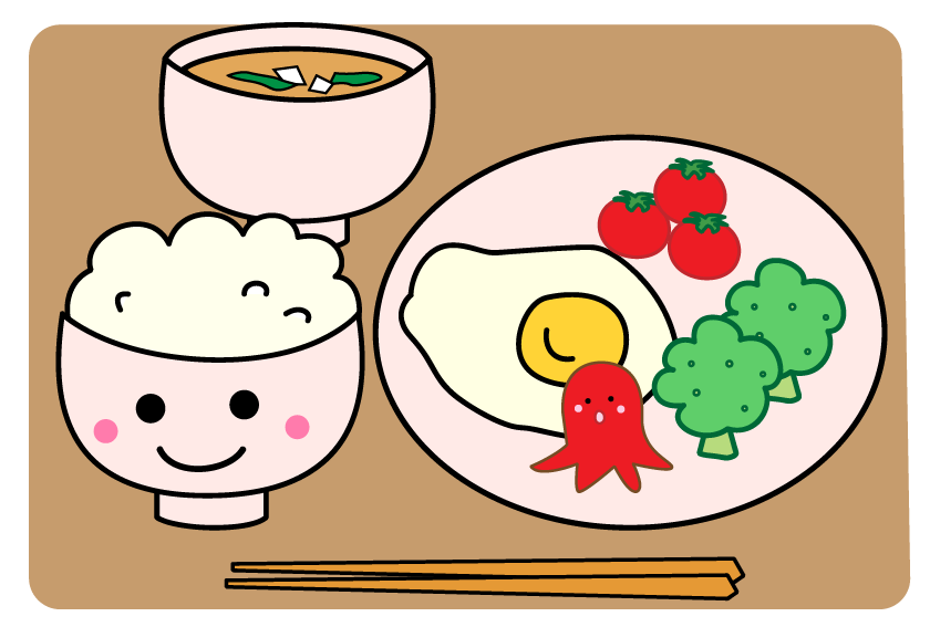 ごはん 味噌汁 タコウインナー ブロッコリー プチトマト 目玉焼き 朝ごはん