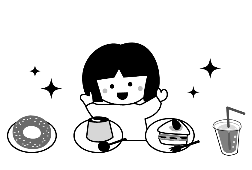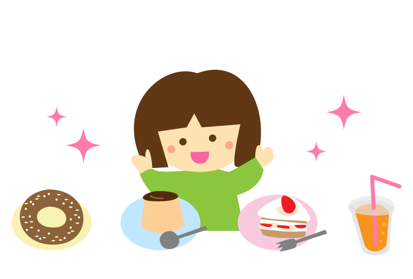 ドーナツ プリン ケーキ イチゴショート オレンジジュース おやつ 3時 スイーツ 食育