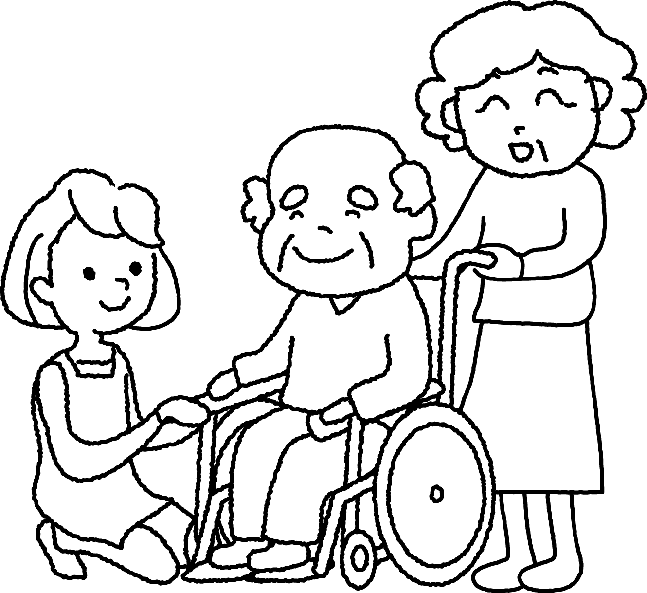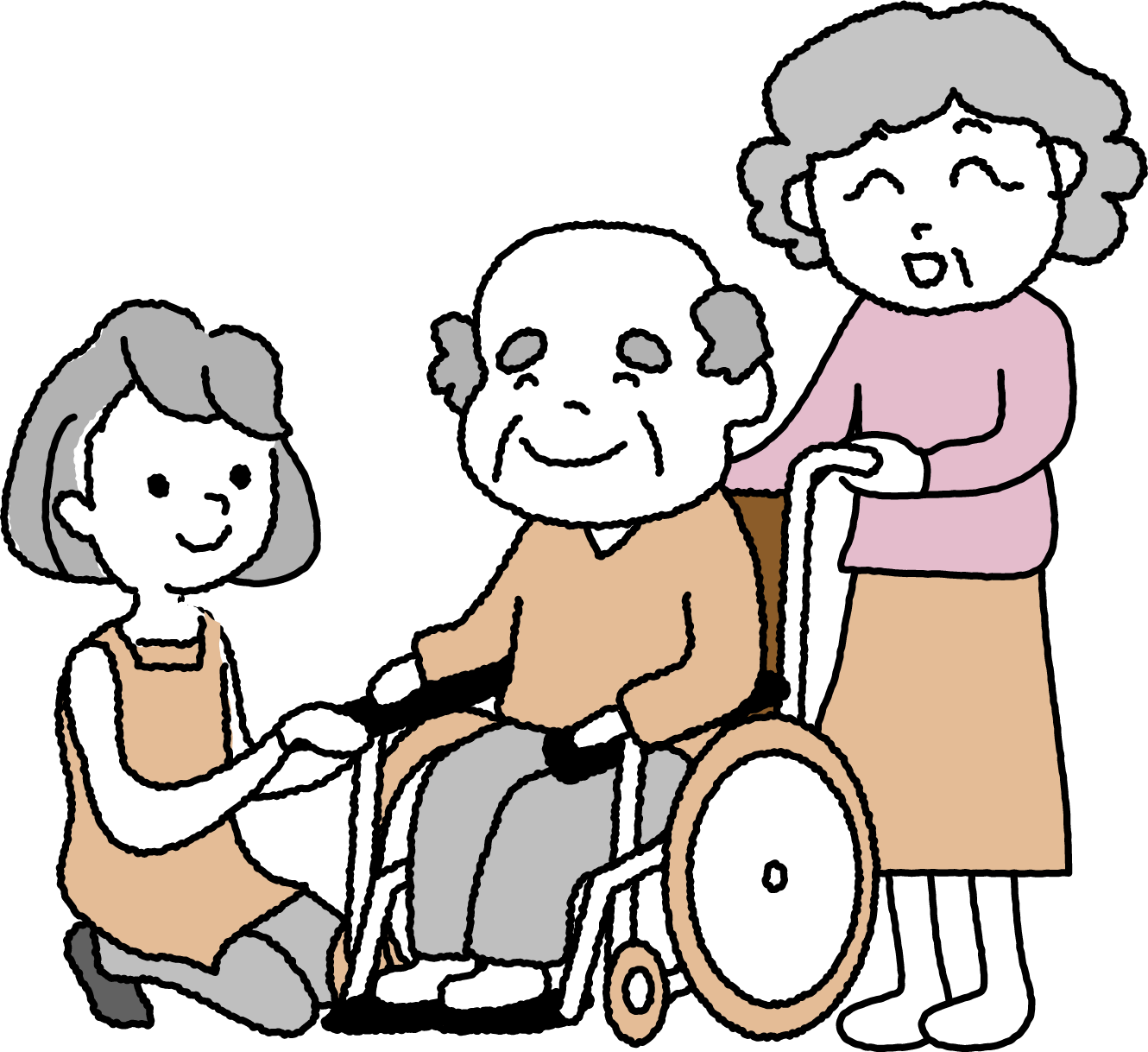 男性 女性 ヘルパー 介護士 おじいちゃん おじいさん イス 椅子 いす 乗り物 デイサービス 車イス 車椅子 車いす 福祉