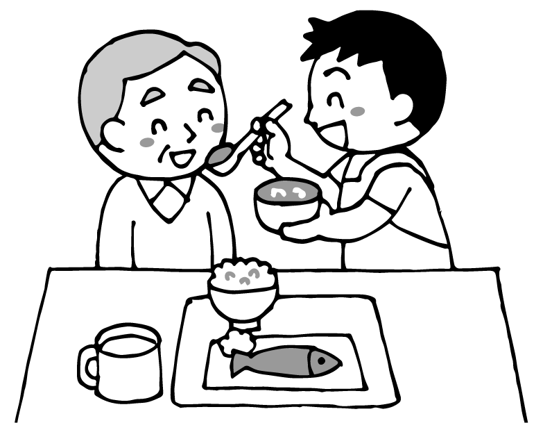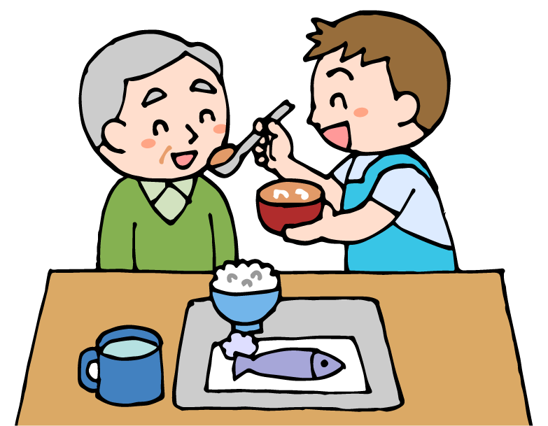 デイサービス 男性 ヘルパー 介護士 おじいちゃん おじいさん 魚 味噌汁 みそ汁 米 お米 ご飯 食べ物 食事 福祉 老人ホーム