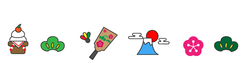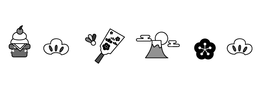 富士 松 梅 羽子板 鏡餅 もち 新春 新年 年賀 お便り