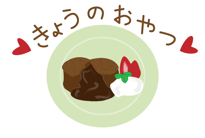 きょうのおやつ チョコレートケーキ チョコ バレンタイン 給食 おやつ デザート 給食だより お便り いちご スイーツ
