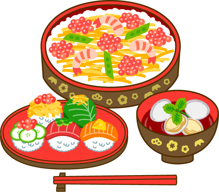 ひな祭り 雛祭り 食べ物 お寿司 寿司 手まり寿司 手毬寿司 海鮮 米 まぐろ マグロ ねぎ ネギ サーモン れもん レモン 卵 たまご いくら イクラ きゅうり キュウリ 貝 ハマグリ はまぐり お吸い物 さやえんどう えび エビ 海老 食事 ちらし寿司 五目寿司