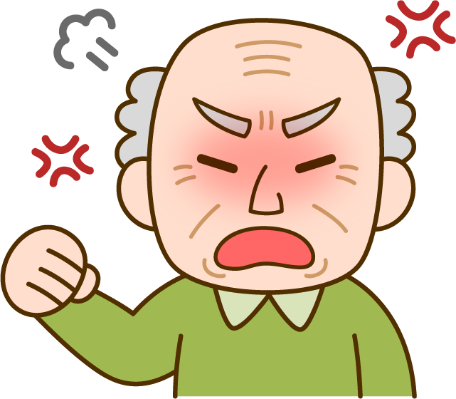 介護施設 デイサービス 老人ホーム お年寄り 老人 高齢者 男性 おじいさん おじいちゃん 怒ってる顔 怒ってる 怒り 認知症