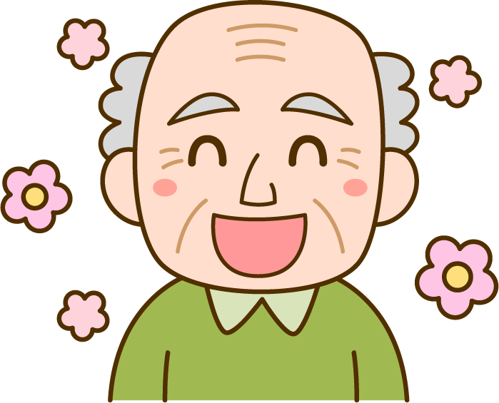 介護施設 デイサービス 老人ホーム お年寄り 老人 高齢者 男性 おじいさん おじいちゃん 笑顔 認知症 花