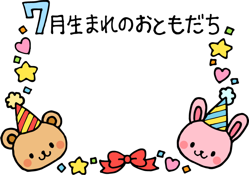 7月 7月 誕生日 お誕生日 くま クマ 熊 うさぎ ウサギ 兎 動物 帽子 パーティー 星 ハート リボン