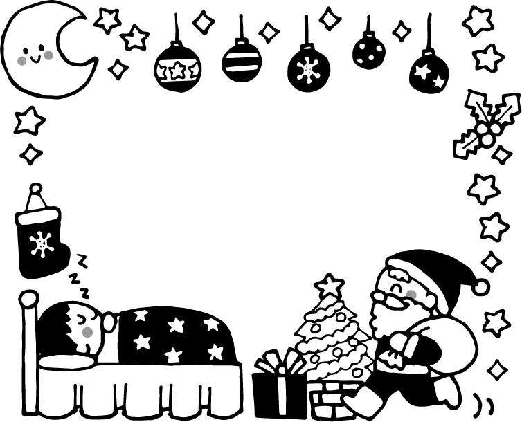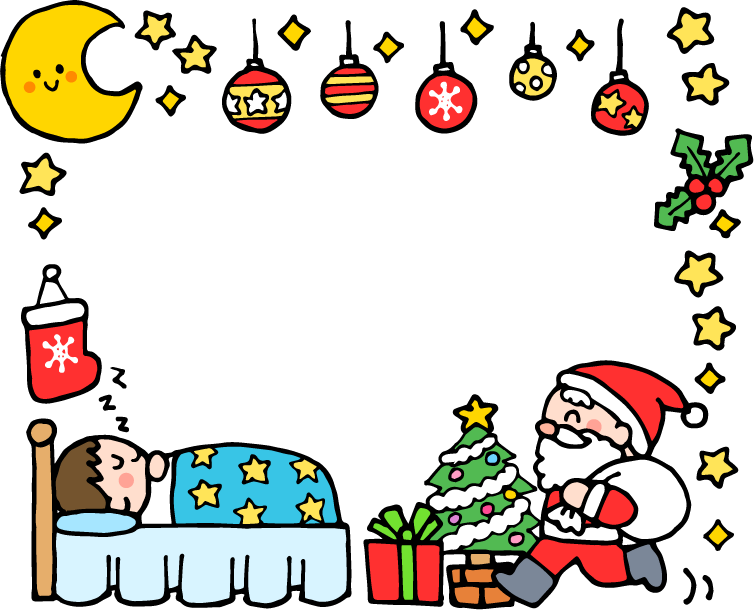 クリスマス クリスマスツリー サンタクロース 靴下 子ども 男の子 園児 ベッド プレゼント 月 星 キラキラ ヒイラギ 冬フレーム