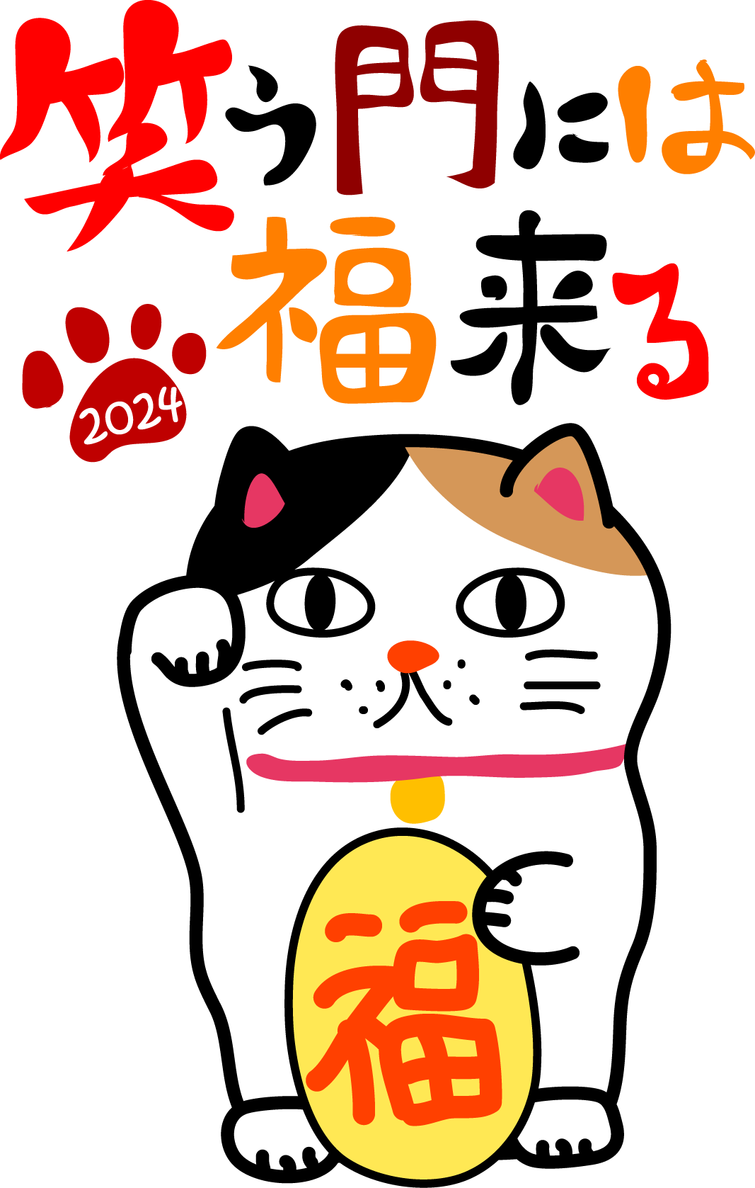 年賀 2024 辰 龍 干支 2024年 年賀状 お正月 正月 今年もよろしくお願いします NEW YEAR 笑う門には福来たる 招き猫 まねきねこ