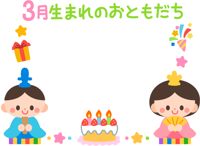 3月 3月 3月生まれのおともだち 3月生まれのお友達 誕生日 お誕生日 誕生日ケーキ ケーキ クラッカー プレゼント 星 ひな祭り 雛人形 お雛様 お内裏様