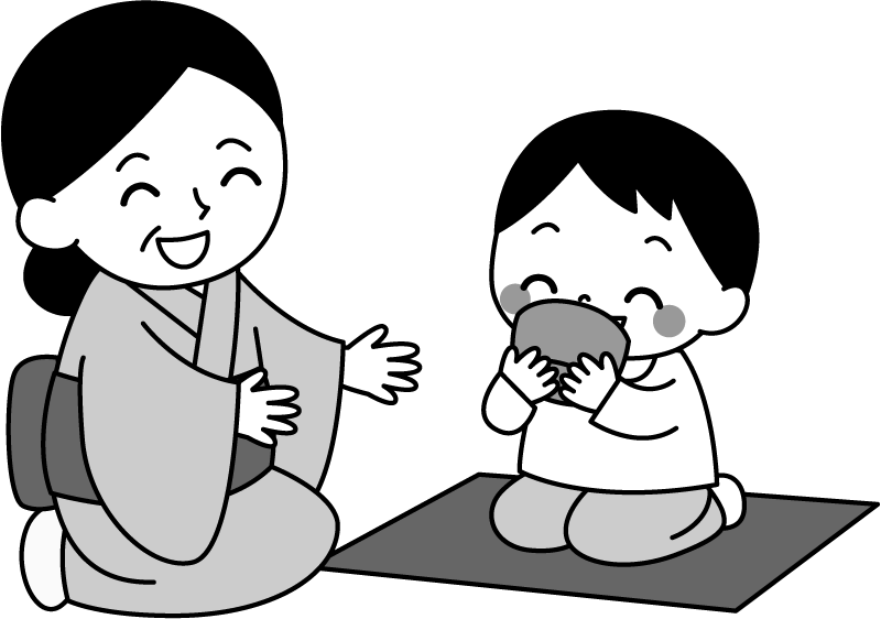 お茶会 お茶 茶道 仏教 子ども こども 男の子 園児 大人 女性 おばあさん 先生