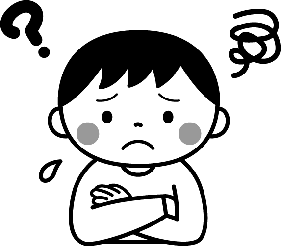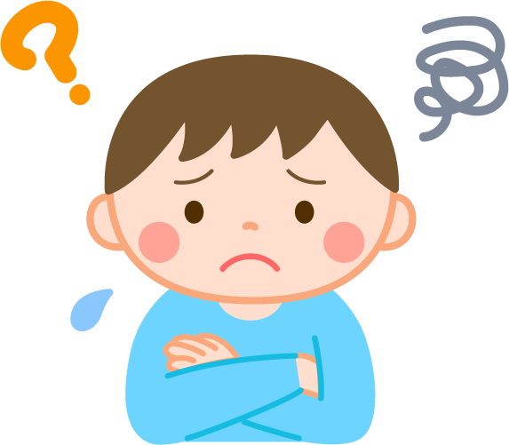 子ども こども 男の子 園児 汗 ? 分からない わからない 困惑 気持ち 表情 顔 困り顔 考えている 考える こまっている 困っている 困る こまる
