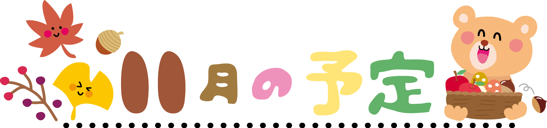 落ち葉 11月 園だより おたより お便り 新聞 タイトル くま クマ 遠足 紅葉 もみじ いちょう 銀杏 くり 栗 クリ 秋の味覚 収穫 収穫祭