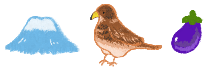 ナス なす 茄子 タカ 鷹 富士山 謹賀新年 正月 賀正 園だより 年賀状 初夢 縁起