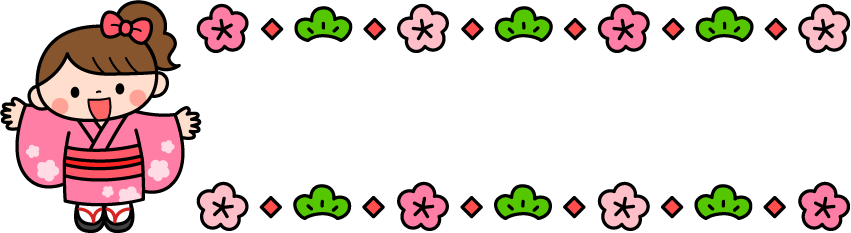 冬フレーム 松 梅 花 梅の花 子ども 子供 こども 女の子 着物 お正月 タイトル 1月 1月 えんだより 園だより こども園 幼稚園 保育園
