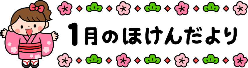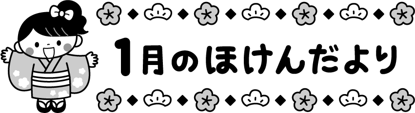 保育園 幼稚園 こども園 園だより えんだより タイトル 1月 1月 ほけんだより 保健だより 保健 松 梅 花 梅の花 子ども 子供 こども 女の子 着物 お正月