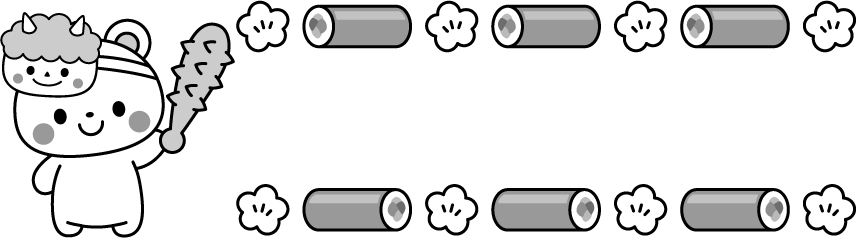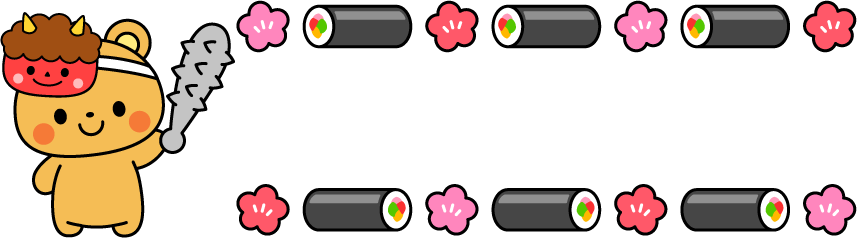 冬フレーム 料理 食べ物 お寿司 寿司 巻き寿司 梅 花 金棒 動物 熊 クマ くま お面 鬼 豆まき 節分 2月 2月 タイトル えんだより 園だより こども園 幼稚園 保育園 恵方巻 恵方巻き 冬のイベント