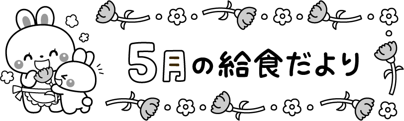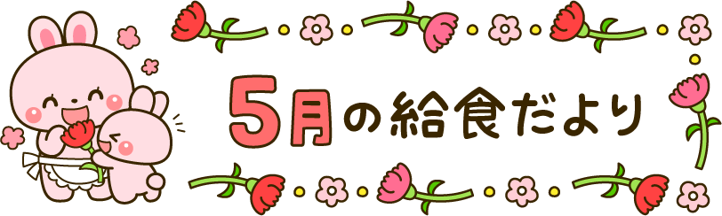 保育園 幼稚園 こども園 園だより えんだより タイトル 5月 5月 きゅうしょくだより 給食だより 給食 母の日 動物 うさぎ ウサギ 兎 花 カーネーション リクエスト