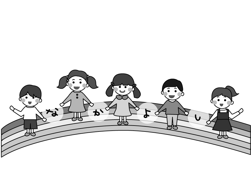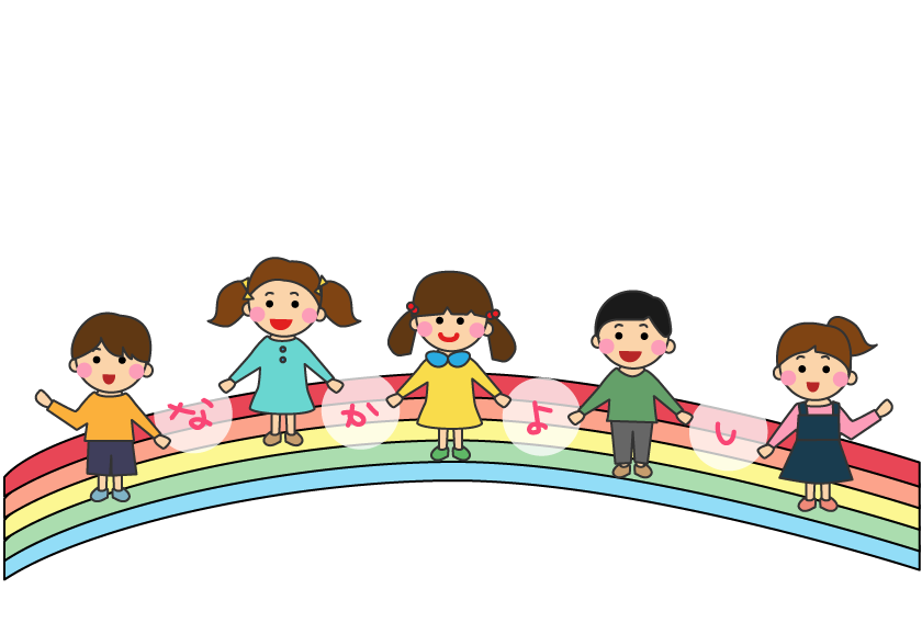 ともだち 友達 友だち 仲良し 手をつなぐ えんだより お便り 手紙 男の子 女の子 虹 にじ