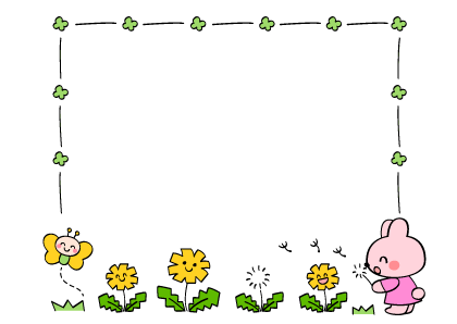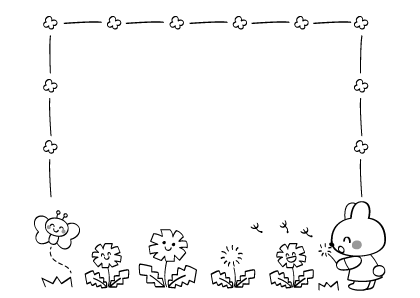 花 春フレーム たんぽぽ 動物 うさぎ ちょうちょ