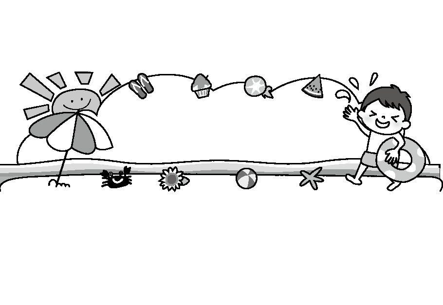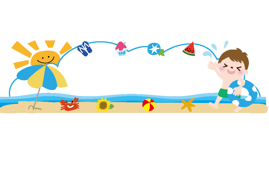 クラスだより 7月 8月 スイカ ひまわり 朝顔 ビーチボール ビーチサンダル 海 えんだより夏フレーム