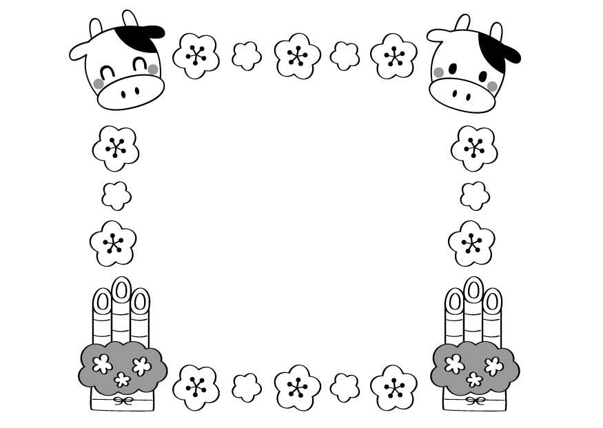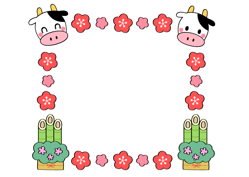 お正月 牛 2021 梅 門松
