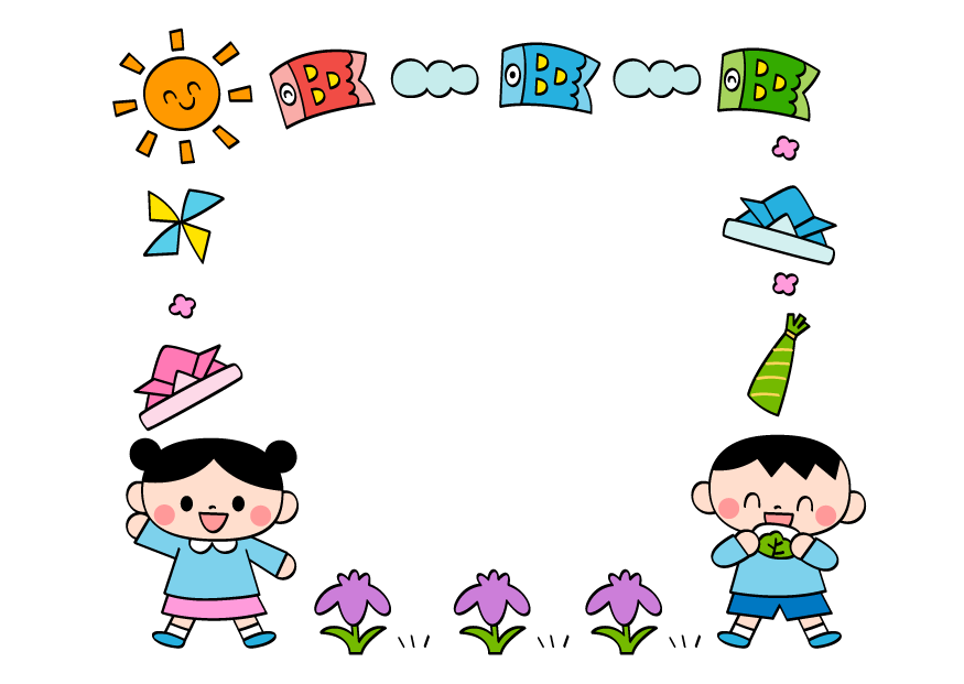 こどもの日 かぶと 柏餅 こいのぼり 菖蒲 花 雲 風車 太陽 春フレーム