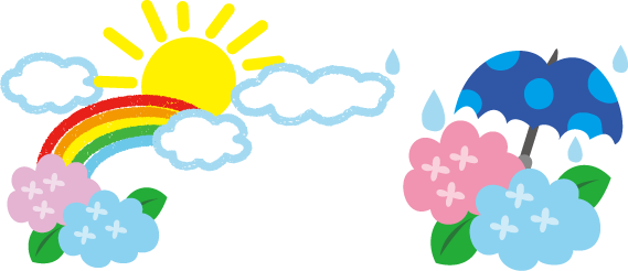 傘 夏フレーム あじさい 虹 太陽