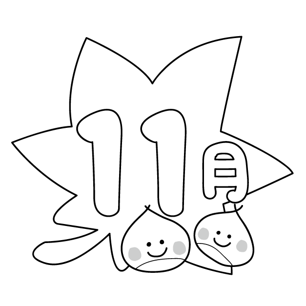 11月タイトル 園だより えんだより 落ち葉 くり 栗 栗拾い くり拾い もみじ 紅葉
