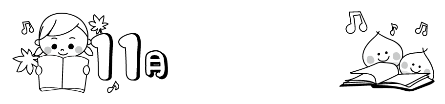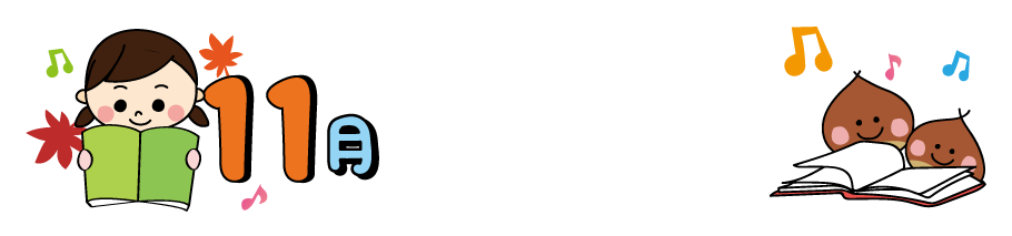 11月タイトル 園だより えんだより 落ち葉 くり 栗 栗拾い くり拾い もみじ 紅葉