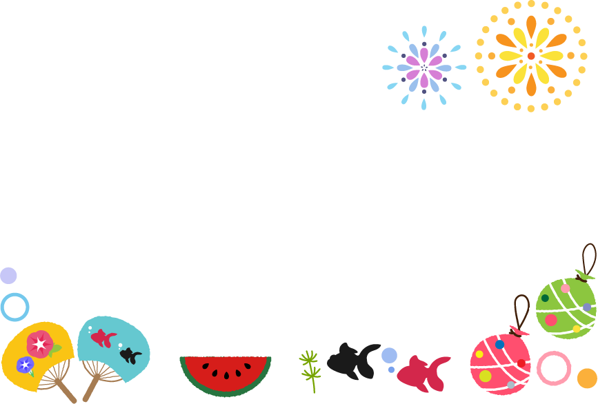 夏フレーム 花火 金魚 うちわ ヨーヨー スイカ 夏祭り お祭り 縁日 西瓜 すいか キンギョ きんぎょ はなび 生き物 生きもの いきもの ゲーム あそび プールゲーム
