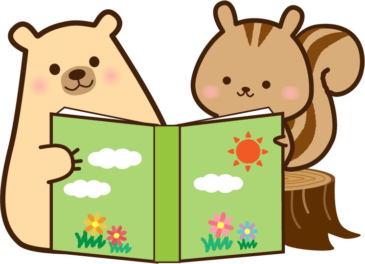掲示板 手紙 お便り メッセージ 本読み クマ リス 読書 絵本 読書の秋 読書週間 絵本の日