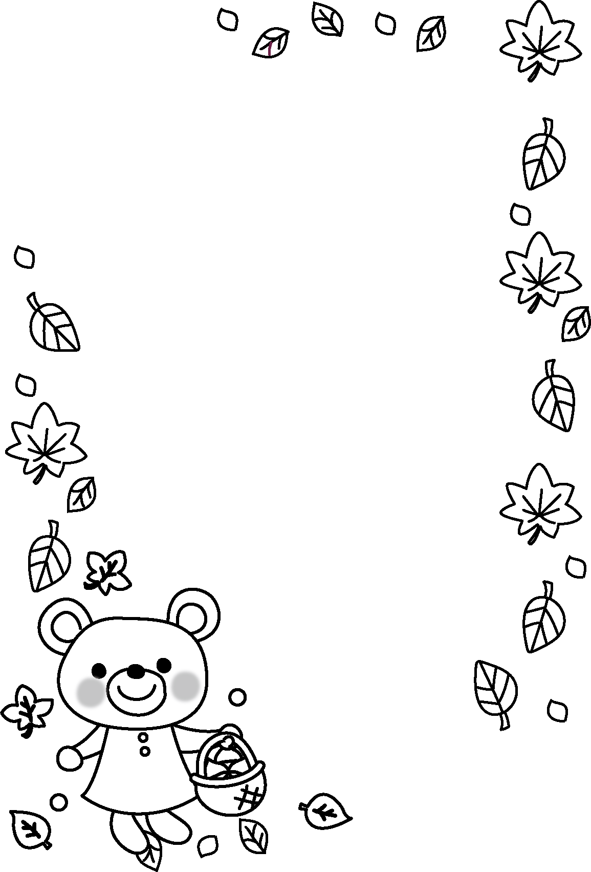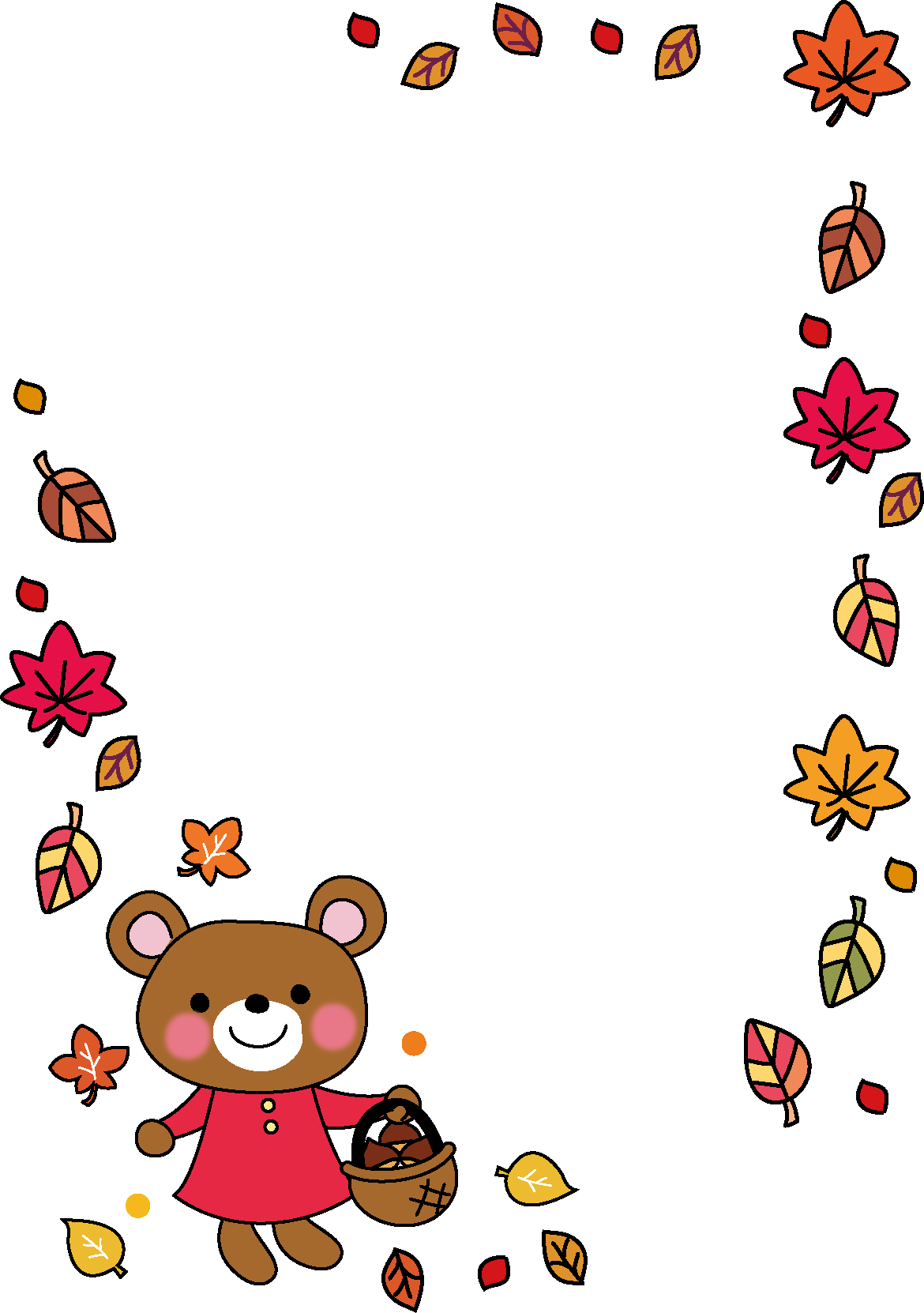 囲み 秋フレーム もみじがり 紅葉狩り 秋の味覚 熊 クマ くま