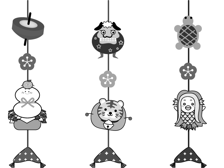 かめ とら 寅年 縁起物 アマビエ 鏡餅 梅 コマ