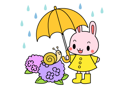 あじさい 動物 うさぎ 梅雨 かたつむり かさ