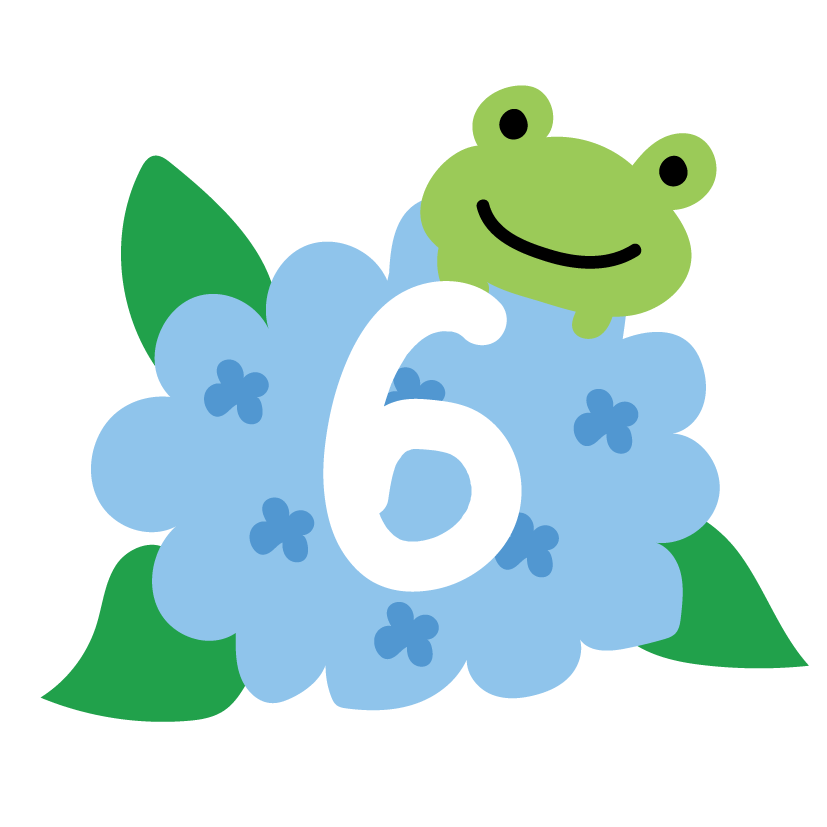 6月のよてい 6月の予定 6月のえんだより 夏フレーム 園だより夏夏のイベント かえる 蛙 紫陽花 あじさい