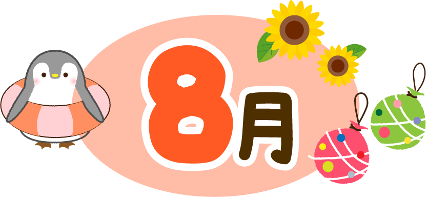 掲示板 手紙 お便り メッセージ 行事予定 幼稚園 保育園 ペンギン ひまわり ヨーヨー ゲーム・あそび プールゲー 8月ム