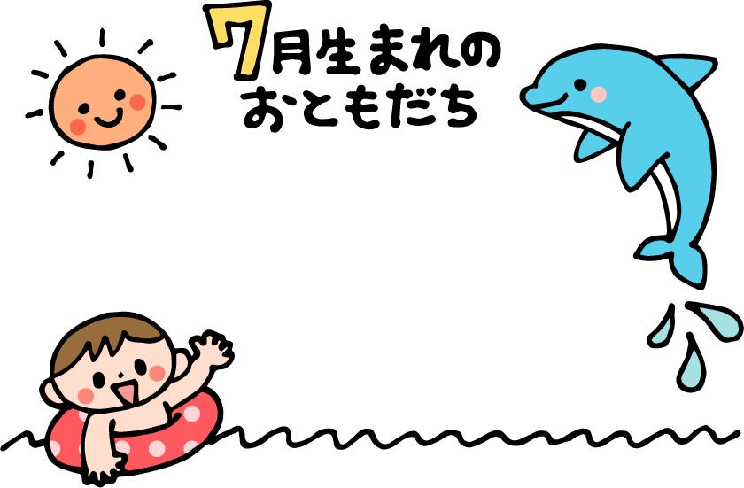 7月 誕生日 お誕生日 いるか イルカ 海 太陽 男の子 浮き輪 うきわ 夏フレーム