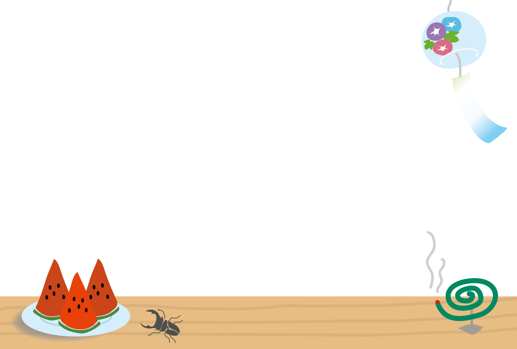 夏の特集 夏フレーム 蚊取り線香 風鈴 朝顔 クワガタ 夏休み