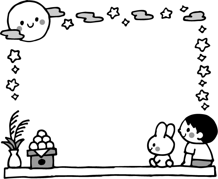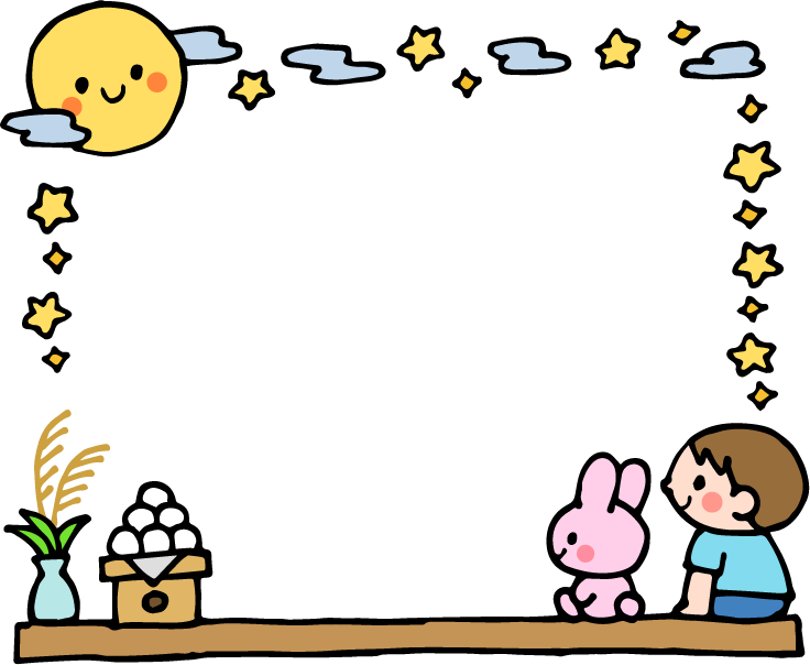 お月見 月 満月 雲 くも 餅 お餅 月見団子 団子 だんご 十五夜 食べ物 和菓子 お菓子 うさぎ ウサギ 兎 動物 星 キラキラ ススキ