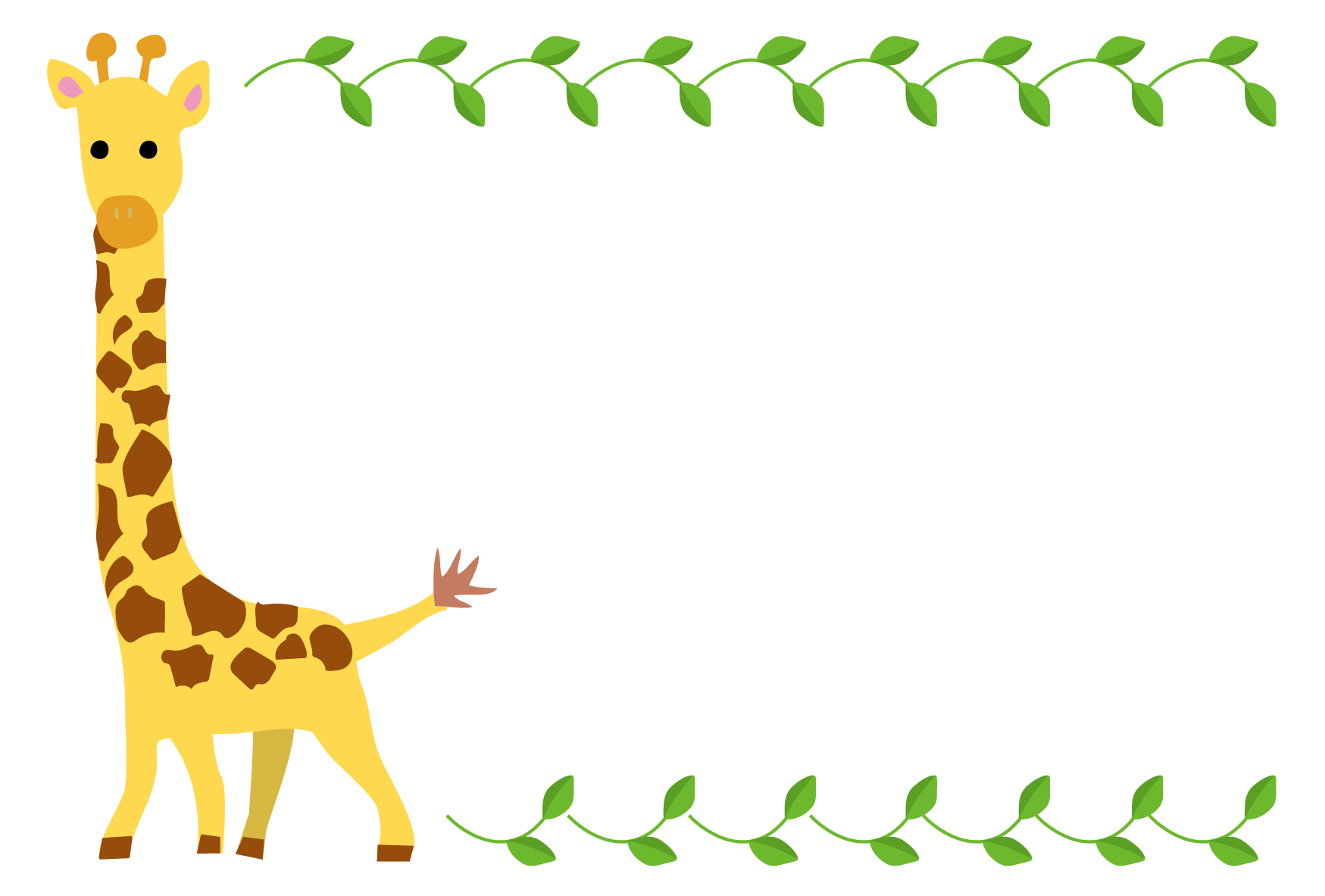 動物 キリン 麒麟 葉っぱ フレーム シンプル