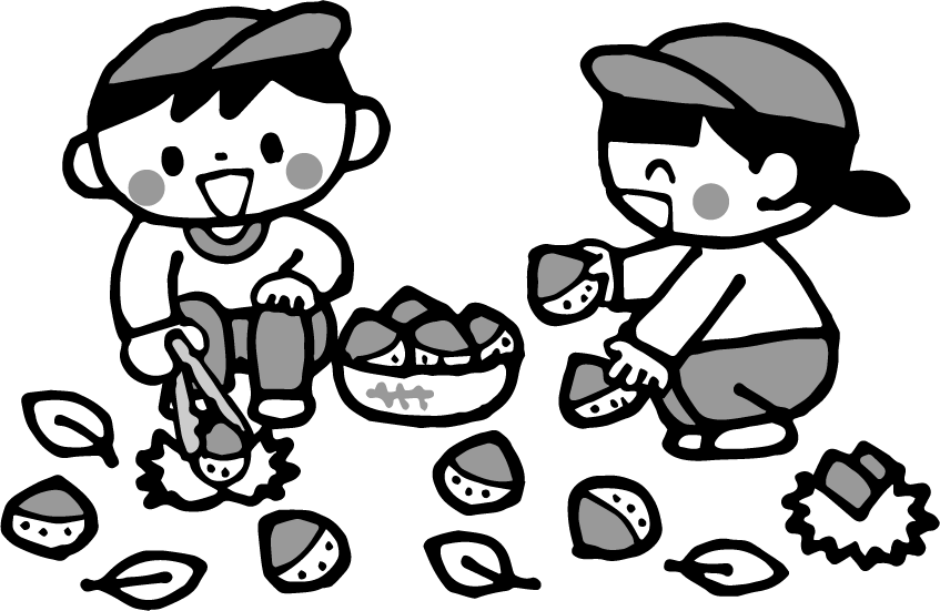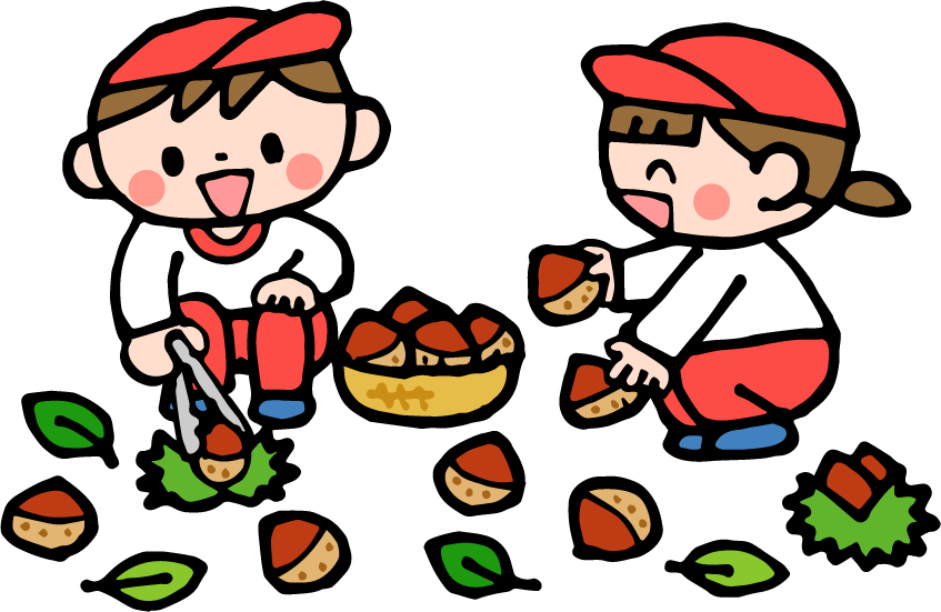 栗拾い 栗 くり クリ 果物 フルーツ 食べ物 園児 体操服 男の子 女の子 葉 葉っぱ 遠足