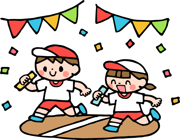 運動会 男の子 女の子 帽子 園児 リレー 体操服 旗 ガーランド かけっこ バトン