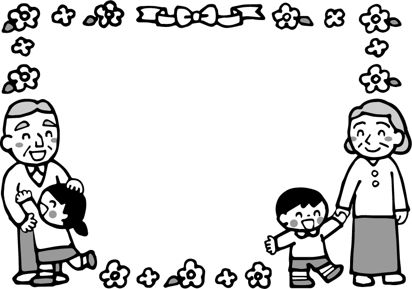 敬老の日 おじいちゃん おばあちゃん 祖母 祖父 リボン 花 秋フレーム 園児 男の子 女の子 福祉