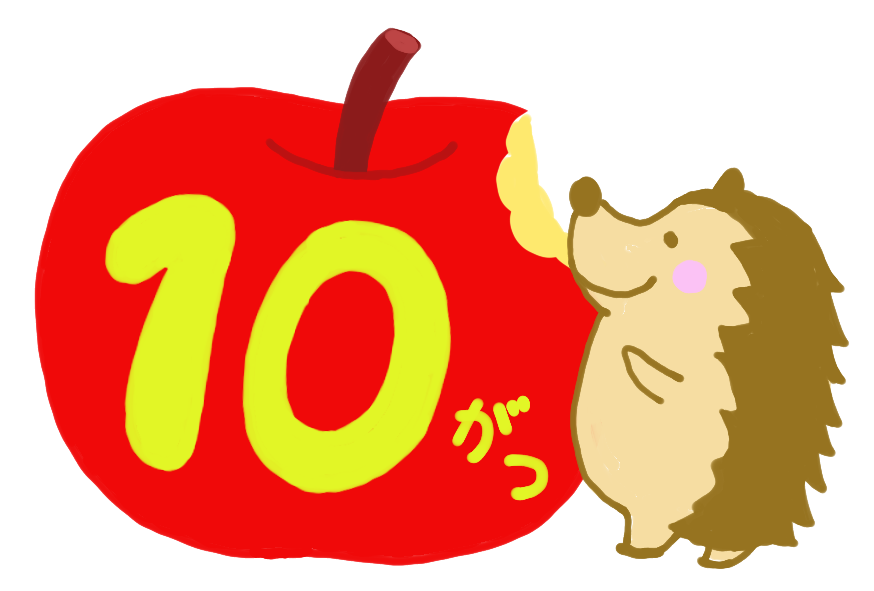 リンゴ 林檎 果物 10月 園だより お便り フルーツ はりねずみ 動物