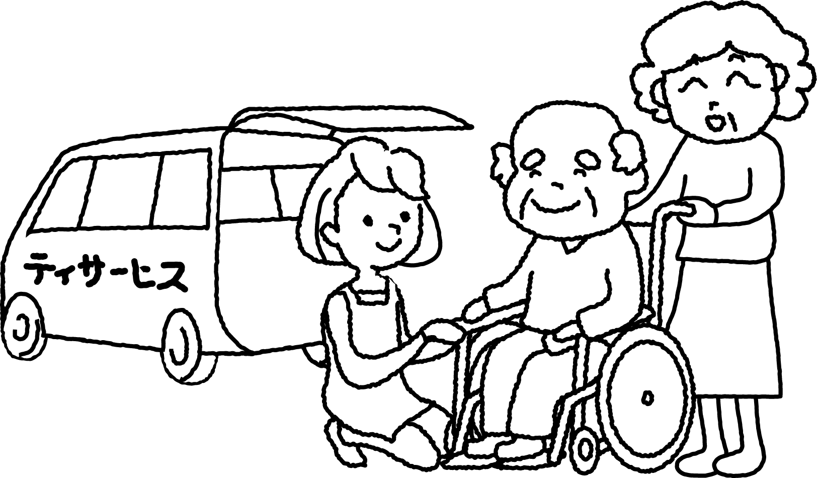男性 女性 ヘルパー 介護士 おじいちゃん おじいさん イス 椅子 いす 乗り物 デイサービス 車イス 車椅子 車いす 福祉