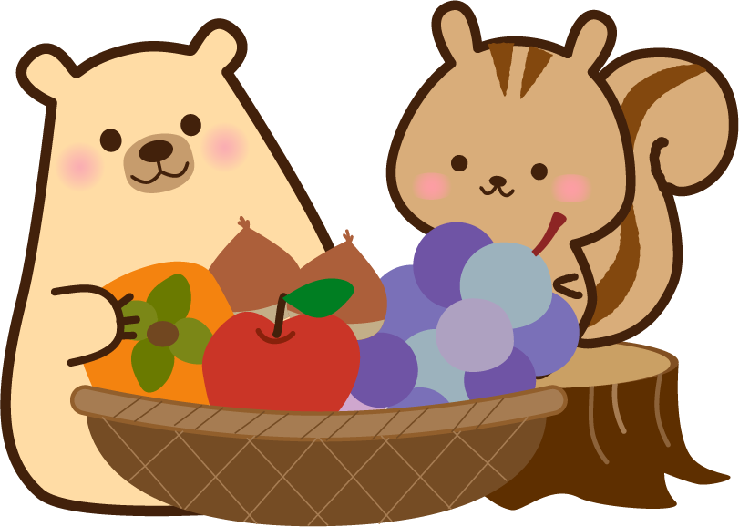掲示板 お便り メッセージ くま りす フルーツ 果物 栗 秋の味覚 どうぶつ 熊 カゴ かご